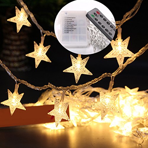 Yotako 5M 40 LED Star String Lights Battery Operated String Lights with Remote Decorative Fairy Lights Indoor Outdoor Wall String Lights for Bedroom Camping Garden Christmas Decoration