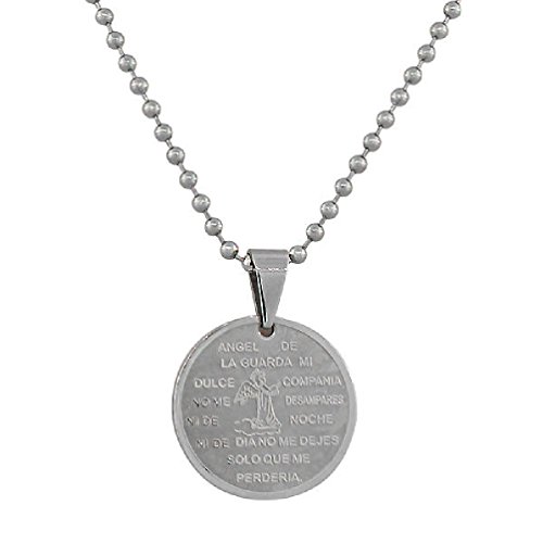 -. Binding : Jewelry -. Brand : Anguss Fashion Jewelry -. Department : girls -. Feature : Length (inches):19 / This necklace is crafted of durable highly polished 100% stainless steel. Give it to the loved one or treat yourself for a trendy style. The pendant features a beautiful image of Guardian Angel and the Angel De La Guarda prayer (in Spanish). The 19.00in silver-tone chain features a connector type of clasp that allows to lock the jewelry securely around your neck. -. Label : Anguss -. Manufacturer : Anguss -. Model : 281148513606 -. MPN : 281148513606 -. PartNumber : 281148513606 -. ProductGroup : Jewelry -. ProductTypeName : FASHIONNECKLACEBRACELETANKLET -. Publisher : Anguss -. Studio : Anguss -. Title : Stainless Steel Silver Guardian Angel De La Guarda Religious Pendant Necklace