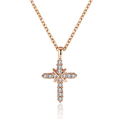 -. Title : Fashion Jewelry Cross Pendant Necklace Charm Girl Rose Gold Plated