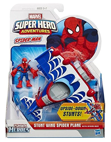 Your little hero can "fly" into action with this Spider-Man figure and his Stunt Wing Spider Plane vehicle! This spider-charged plane is just the right size for his hands and his acrobatic Spider-Man figure can stand on the wing - even when it's upside down! Give the gift of awesome with this Stunt Wing Spider Plane vehicle and Spider-Man figure! Marvel products are produced by Hasbro under license from Marvel Characters B.V.Feature