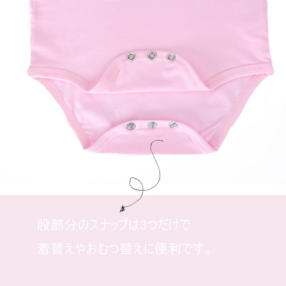 股部分のスナップは3つだけで着替えやおむつ替えに便利です。