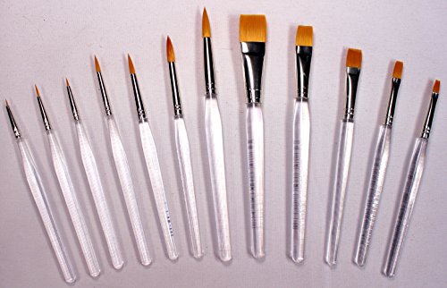 - 12 Gold Taklon Clear Acrylic Handle Art, Craft, Hobby Paint Brushes, Short Handles