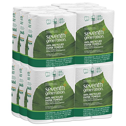 When life gets messy, clean it up with Seventh Generation Paper Towels made with 100% recycled paper. These hard-working, strong and absorbent paper towels absorb spills quickly, even when wet - and give you one more way to reduce your household's impact on the environment. Made with 100% Recycled Paper without any added chlorine, dyes, inks or fragrances. Our white paper towels save energy, water and trees without sacrificing any performance. These paper towels are made with 100% recycled content, with a minimum of 50% post-consumer recycled content. With "right-size" half-sheets for smaller jobs, they're a smart way to stretch all kinds of resources a whole lot further. They can even be composted after use. Did you know? If every household in the US replaced just one 2-pack of 140-sheet virgin paper towels with our 100% recycled product we could save over 720,000 trees. *Compared to the total square footage of a regular roll 45ct 11” x 11” sheet.Feature