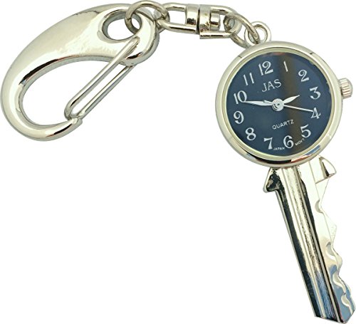 JAS Unisex Novelty Belt Fob/Keychain Watch Key Silver Tone - Black Dial
