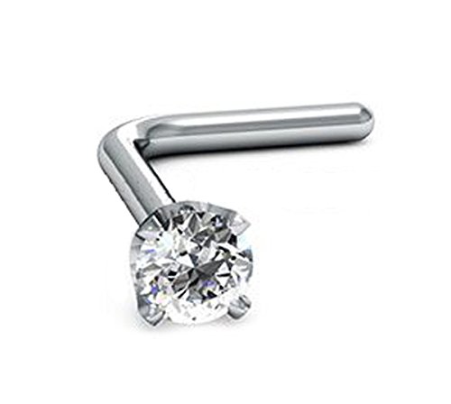 1.5mm Round-Cut-Diamond and 18K White Gold L-Shaped Nose Pin/ Stud