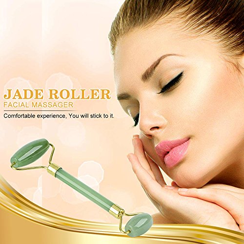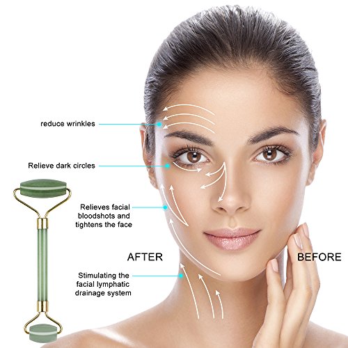 ♛NATURAL JADE:Jade Roller, an ancient Chinese beauty instrument, is popular on Instagram.Jade from the mountains of Tibet, 100% pure natural jade.Smooth touch feeling that never hurt your skin.Great for puffiness in the face or under eyes.The Jade is polish to a smooth finish, The cool jade also helps remove edema and red blood silk.