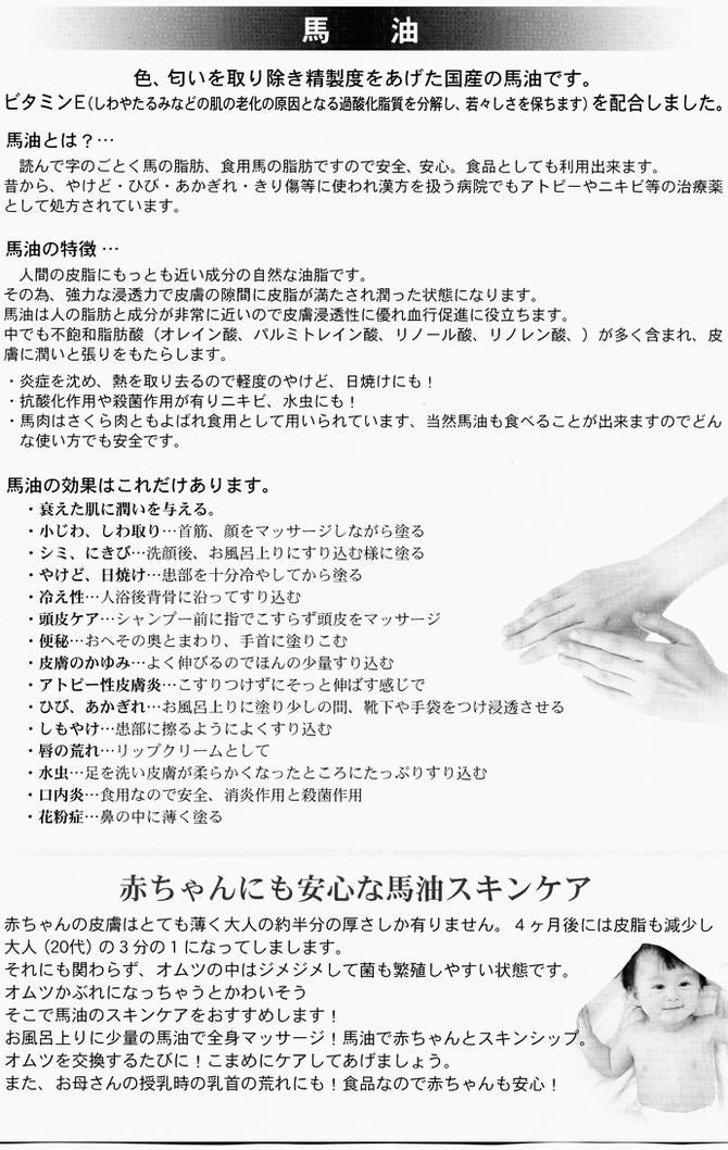 70ml. Hidaka pure oil is an edible registration product, please patronize the 100% horse oil commodity of the special manufacturing recipe which took time carefully.