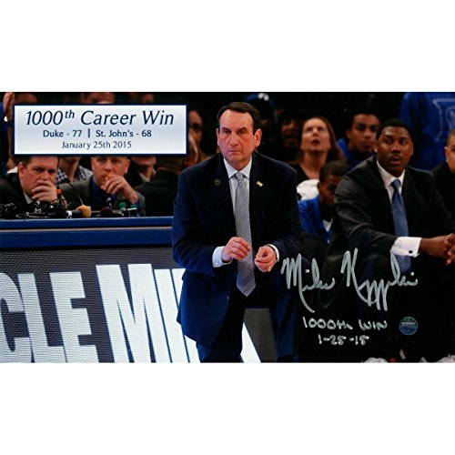 Mike Krzyzewski Signed 1000th Career Win 6x10 Photo w/ 1000th Win & Date Insc