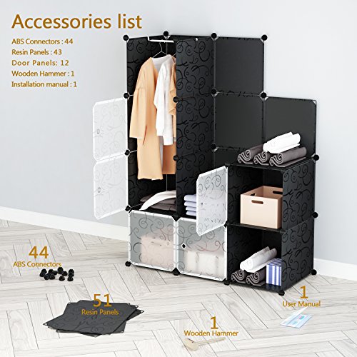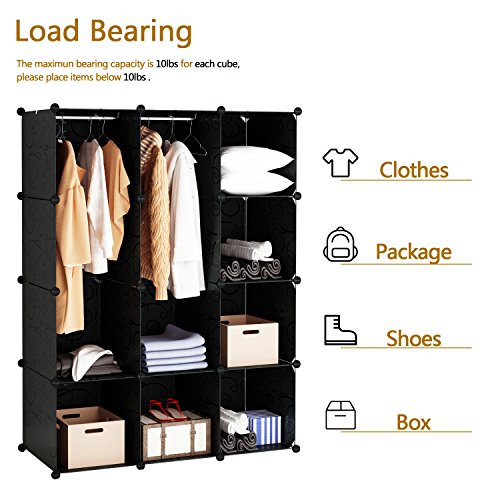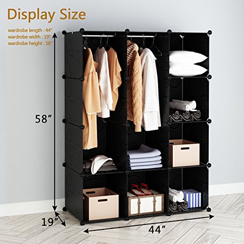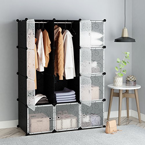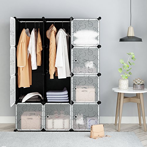 Tespo Portable Clothes Closet Wardrobe, DIY Modular Storage Organizer, Sturdy Construction, 12 Deeper Cubes with Hanging Rods, Curly Pattern Black White (12Cube)