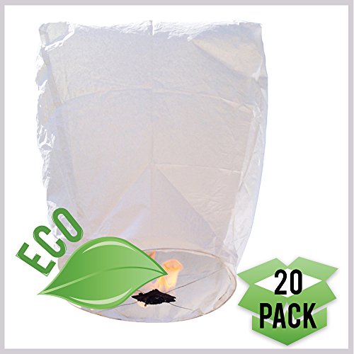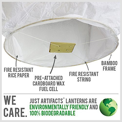 Studio : JustArtifacts.Net Publisher : JustArtifacts.Net Product Description 20 White Mini Eclipse Flying Sky (Floating) Lanterns. Premium ECO wire-free Sky Lanterns are manufactured with the best craftsmanship and are made of high quality fire resistant paper. Premium sky lanterns include a pre-attached upgraded biodegradable fuel cell. No metal wire?High Quality upgraded fuel cell included and pre-assembled. Shapes included: Eclipse (18" Width x 22" Height). 100% Biodegradable. 0