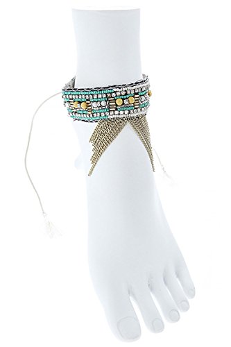 -. Title : KARMAS CANVAS SEED BEAD CHAIN FRINGE ANKLET SET