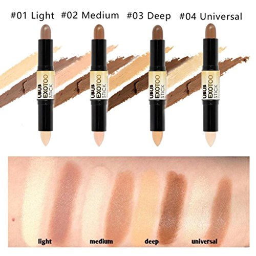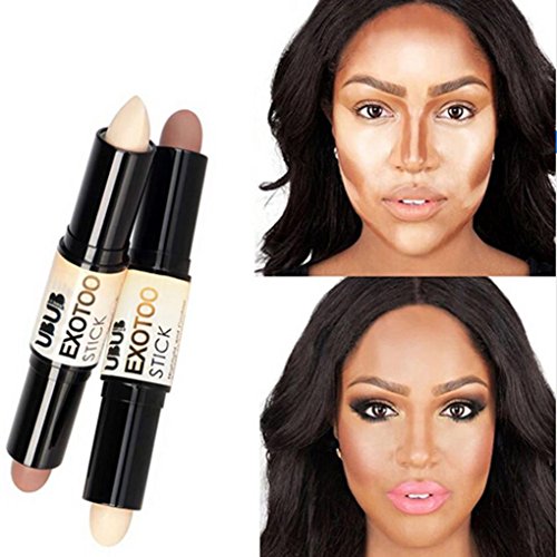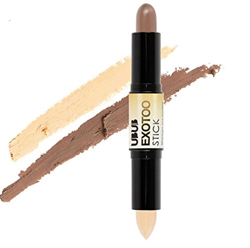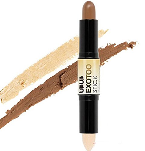 Apply highlight stick on cheekbones, middle of forehead, under eyes, down the center of your nose, on the brow bone and along the jawline
