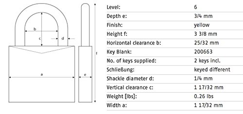 ABUS 72/40 Aluminum Safety Padlock Yellow Keyed Different - Long Shackle (1-1/2) - 6 Pack