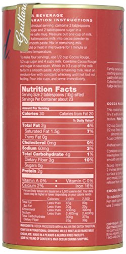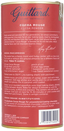 Favored by professional pastry chefs for its intense bittersweet character, E. Guittard Cocoa Rouge has a rich, deep red color, robust fudge-like flavor and full chocolate essence. It's ideal in baked goods such as cakes and pastries where the intense, yet subtle cocoa flavor provides the perfect complement to other ingredients. Made of cocoa processed in the Dutch tradition. Made in USA. 8 oz.
