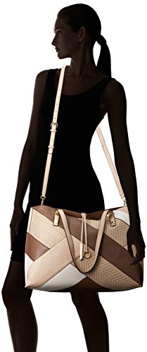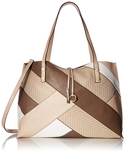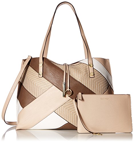 Calvin Klein Unlined Raffia Patchwork Reversible Tote, Wheat Combo