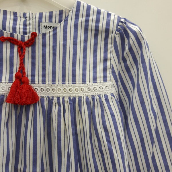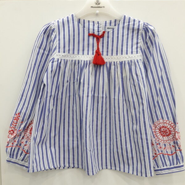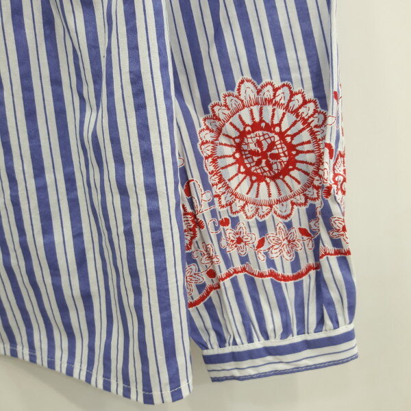 레이스 포인트 와 소매끝단 꽃나염 스트라이프 블라우스입니다