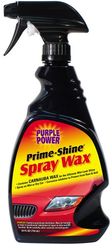 Get that showroom shine on the car with Purple Power Prime-Shine Spray Wax. Formulated with a special blend of polymers, carnauba wax and corrosion inhibitors to provide maximum shine. For use on wet or dry vehicle surfaces. Safe for clear coat and all automotive paint finishes. Directions: Shake well before use. Wash car (no need to dry). Apply Prime-Shine Spray Wax lightly on vehicle's painted surface on section at a time and wipe dry. Buff with a dry soft cotton cloth or pad.