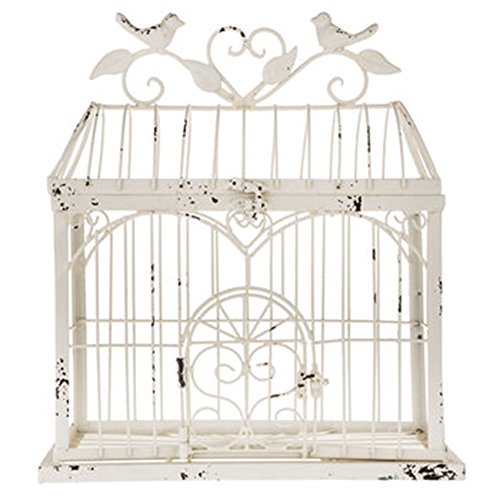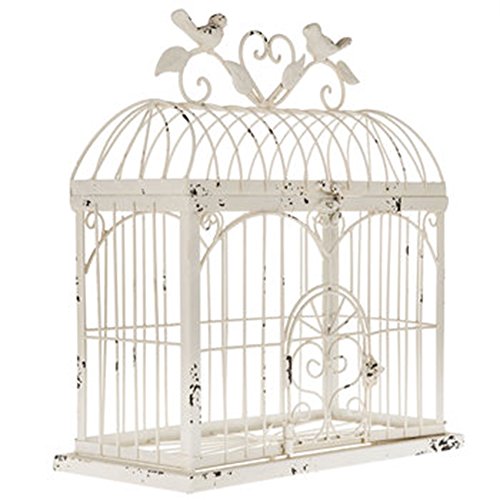 BEAUTIFUL 14.5" DISTRESSED METAL BIRDCAGE HOME DECOR ~ ANTIQUE WHITE ~ 14.5" x 13"