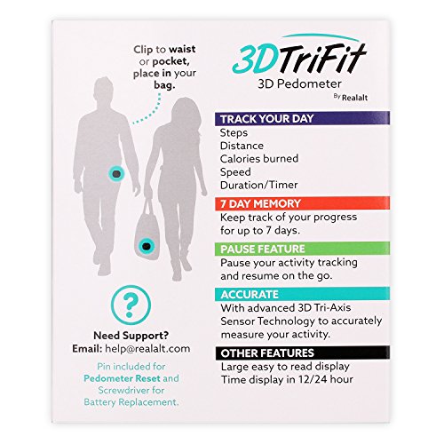 Discover How to Monitor Your Fitness Progress the Most Accurately Way! Introducing 3DTriFit 3D Pedometer Activity Fitness Tracker with Built-in Clip Designed with simplicity and ease of use. No need to upload or connect wirelessly to other devices and you can view your activity records on the move. 3DTriFit 3D Pedometer Activity Fitness Tracker with Built-in Belt Clip features: - Colorful and Attractive Design perfect for women, men, elderly and kids. - 7-Day Memory, Step and Calorie Counter, Distance Tracker, Speed Calculator Exercise Duration - Accurate 3D Motion Sensor - Pause/Resume Feature - 15 Steps Smart Delay - counting will start after 15 steps and continue 16, 17, 18... - Low battery indicator - Supports 12/24 Hour Time Format - Large Digit Easy-to-read Display - Automatic resets at midnight Includes: 1 x 3DTriFit 3D Pedometer Activity Fitness Tracker 1 x CR2032 Battery (lasts approximately 1 year) User's Manual "Your Guide to Walking For Life" PDF book download - to help you get the most from Walking and using your Pedometer, suitable for all fitness levels, keeps you motivated and helps you to improve your health and fitness. Get motivated, stay active, stay healthy! Your complete satisfaction is 100% guaranteed. Click the Button at the Top of this Page to try out our Amazing 3DTriFit 3D Pedometer Activity Fitness Tracker Now! 0 |