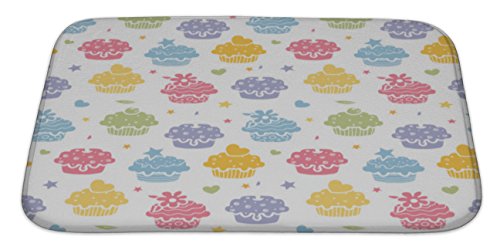 Gear New No Slip Microfiber Memory Foam Colorful Cupcake Party Pattern Bath Rug Mat, 34" X 21"