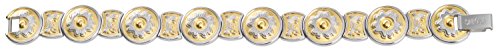 Product DescriptionStainless steel accented with 18k gold plating magnetic bracelet with a detailed scroll design with each link a 1200 gauss magnet.0