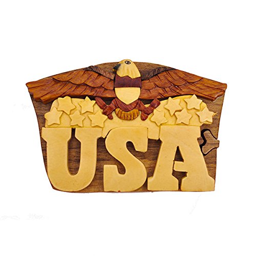 Handmade Wooden Art Intarsia TRICK SECRET USA Eagle 2 Puzzle Trinket Box (3368) (g2)