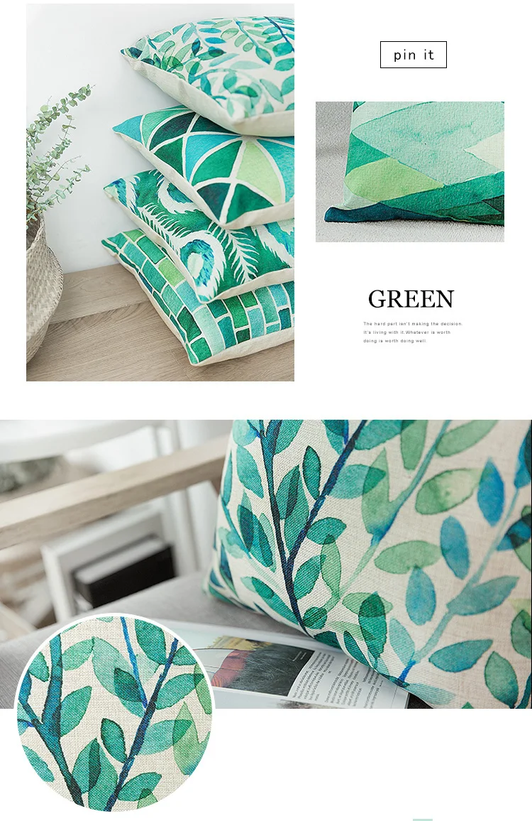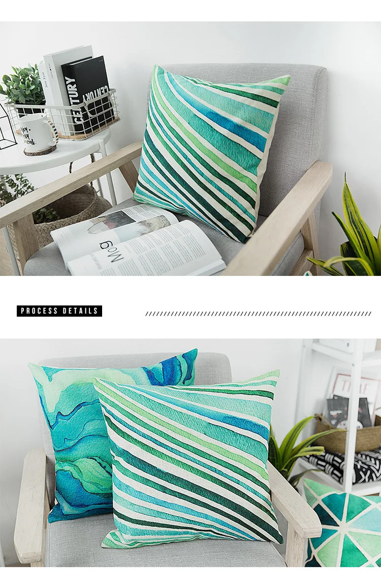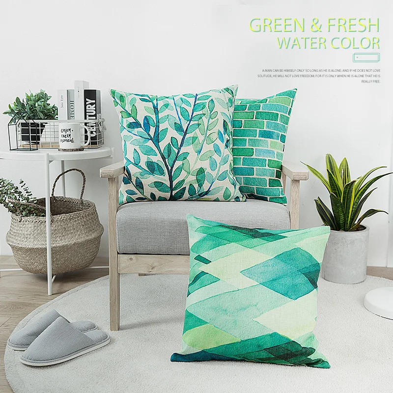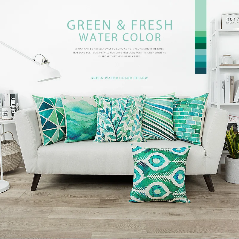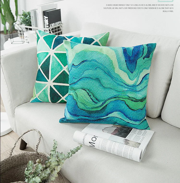 Pattern:Blue Green Watercolor Cushion Cover Abstract