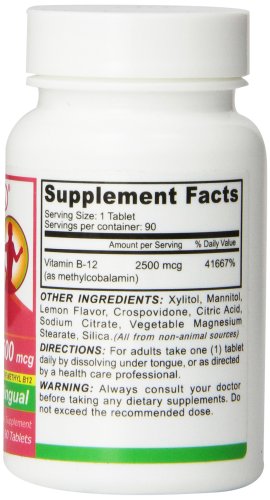 -. Title : Deva Nutrition Vegan Sublingual Fast Dissolve B-12 Tablets, 2500 mcg, 90 Count
