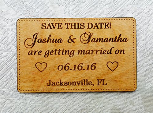 Studio : Party Favors Galore Publisher : Party Favors Galore Binding : Kitchen Product Description 25 Save the Date Personalized Real Wood Cards How UNIQUE are these! Your family and friends will not forget your date. Hand them this card they can put in in their wallet or purse. The cards say at the top "Save This Date" to remind your guests to save this date for you and your significant other's event. Be different and don't have your Save the Dates look like everyone else's! You get 25 cards per order, order as many sets of 25 as you need. Each card measures approx 3.3"x2". After checkout, please send an email to sales@thecameradepot.com. Please write for us the following information: order number, 2 first names Example: Joshua Samantha. We need the event date in number format. Example: 06.16.16 Last line you can have a location or other text of a few words (4 words or less). Features: Handmade in the USA (no long ship times). Real wood. Credit card size. Thickness of wood is 1/8" thick (not thin like competitors which sell theirs at 1/16" which is half the thickness of ours). Beautiful design! 0