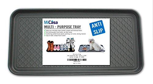 USE TO ORGANIZE SHOES OR BOOTS NEATLY AND MUCH MORE ★ Not only is this tray by MiCasa the single greatest tray for organizing your shoes, boots and other footwear in any home door entryway, but it also serves many other functions as well -- such as acting as a pet tray for food and potty activities for dogs and cats, storing logs and wood for your fireplace, holding paint and other chemicals while cleaning or doing chores, organizing bottles in the laundry room, using on shelves for storage and much much more!