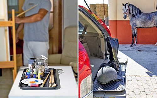 Spill Protection: This 30 by 15-inch polypropylene tray is ultra water-resistant. It will also protect your floor or carpets from chemicals, paints and other cleaning liquids or other materials you may be using around your house!