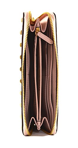 Michael Kors Jet Set Item Studded Leather Zip Around Continental Wallet Clutch, Blossom