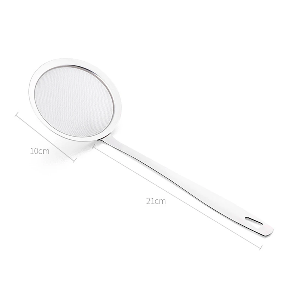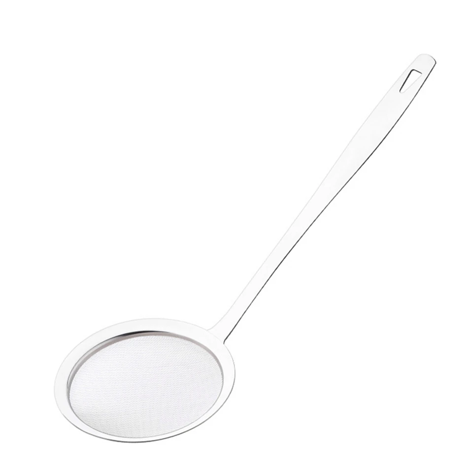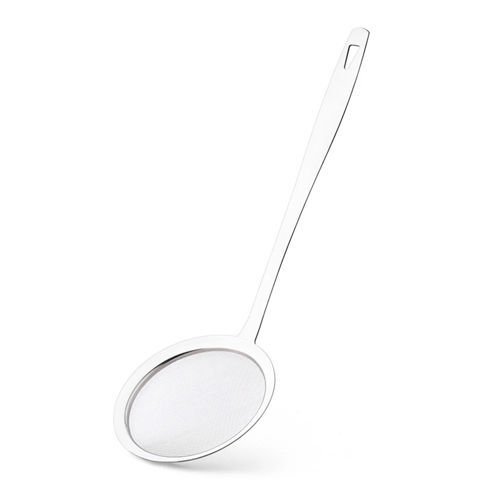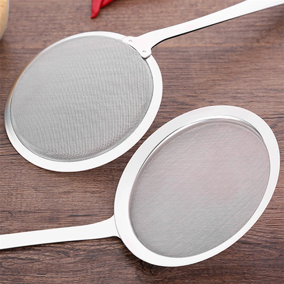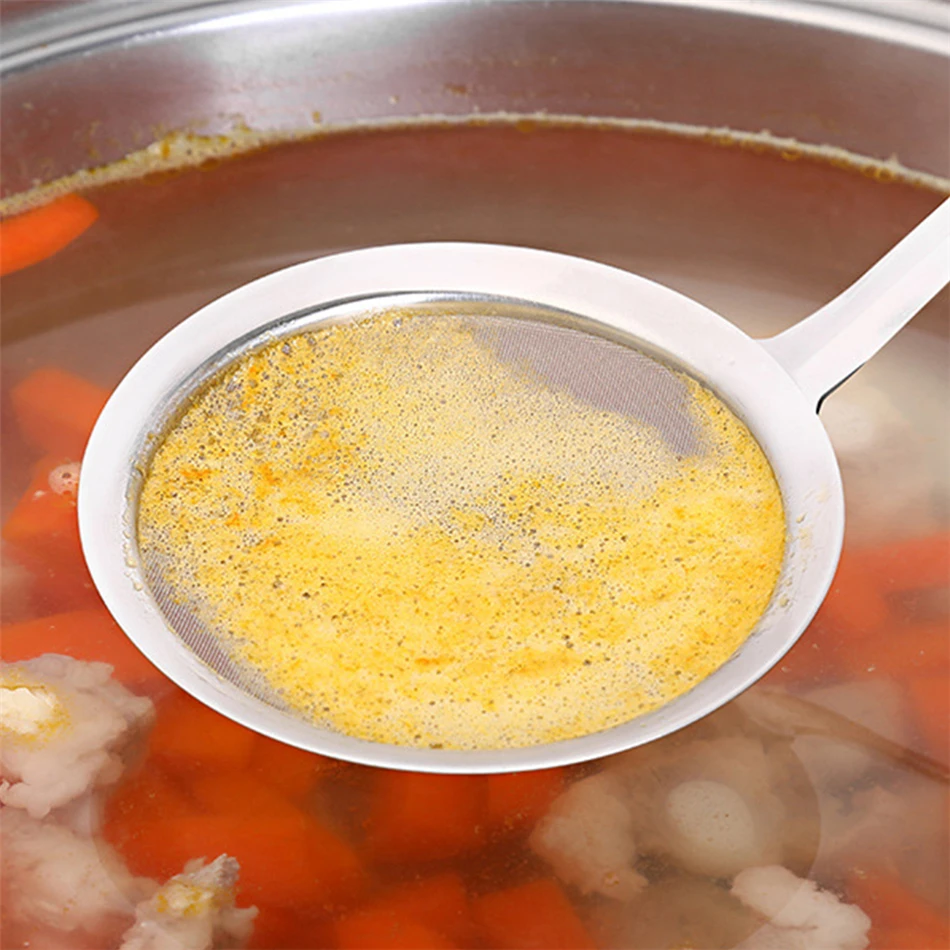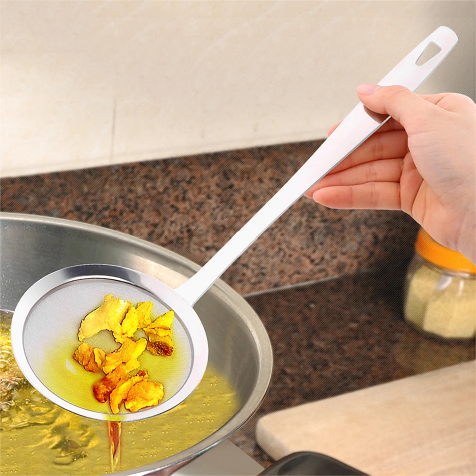 - The mesh is so fine only water comes through. It catches the tiniest particulate matter as well as fat, easily take pieces of batter and meat out of your cooking oil.