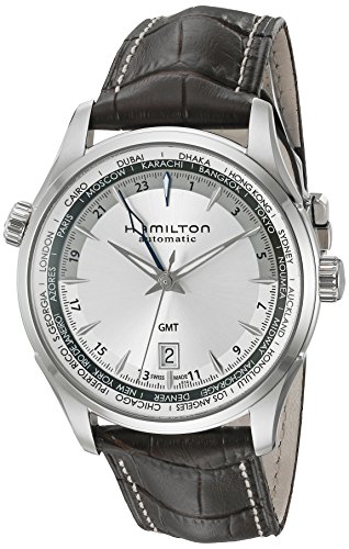 -. Binding : Watch -. Brand : Hamilton -. Department : mens -. EAN : 7640127757635 -. Feature : Stainless steel case with a brown leather strap fixed stainless steel with world time cities bezel / Silver dial with silver-tone hands and index hour markers 24 hour (gmt) markings minute markers around the outer rim / Swiss-automatic Movement / Case Diameter: 42mm / Water Resistant To 50m (165ft: in General, Suitable for Short Periods Of Recreational Swimming, but not Diving or Snorkeling -. Label : Hamilton -. Manufacturer : Hamilton -. Model : H32605551 -. MPN : H32605551 -. PackageQuantity : 1 -. PartNumber : H32605551 -. ProductGroup : Watch -. ProductTypeName : WATCH -. Publisher : Hamilton -. Studio : Hamilton -. Title : Hamilton Men's 'Jazzmaster' Swiss Automatic Stainless Steel and Brown Leather Casual Watch (Model: H32605551)