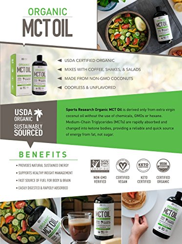 -. Feature : "LIMITED TIME SALE"**: We have found the Only Certified Organic MCT Oil in the world - Goes perfect with your morning coffee, workout smoothie or salad dressing to help provide mental and physical energy from fat, not sugar.* / BENEFITS: MCT Oil converts into ketone energy faster than other oils, helping to ignite your body's metabolic rate while keeping you satisfied and free of food cravings. Build toward your athletic and weight management goals with Organic Coconut MCT.* / NO BAD STUFF: Sourced from ONLY sustainable, Organic Virgin Coconut Oil and processed without the use of chemicals or solvents. Rich in Caprylic (C8) and CaP.R.Ic (C10) fatty acids. / REAL CERTIFICATIONS: Other brands claim to be but our MCT Oil is actually Non-GMO project Verified, USDA Organic and Certifeid Keto, Paleo and Vegan Friendly / 90 DAY SATISFACTION GUARANTEE: If you're not satisfied with our Organic MCT Oil simply return your product within 90 days for a refund.**