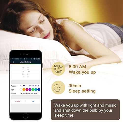 Timing Alarm and Sleep Assistant functions: With Timing Alarm and Sleep Assistant functions, you can set the bulb on / off at the time you specified; let it wake you up naturally with soft light in the morning and start a wonderful day