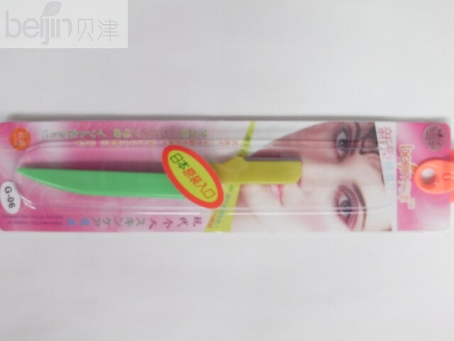 特点:它能帮助修除多余的眉毛,轻轻不留痕迹,刀头小巧易于掌握,能有效修整你的美眉,带有防护网,绝不会弄伤你娇嫩的肌肤。
