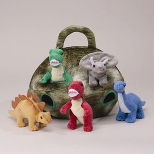-. Title : Plush Dinosaur House with Dinosaurs - Five (5) Stuffed Animal Dinosaur in Play Dinosaur Carrying Case