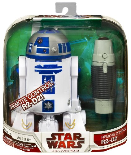 -. Binding : Toy -. Brand : Star Wars -. EAN : 0653569429517 -. Feature : This remote-controlled R2-D2 figure is ready for adventure / Send your plucky astromech droid on exciting missions to save the galaxy / Press the switch to send him forward, then press it again to change direction / Featuring sounds and light, this space-age sidekick is just like the popular character from the Star Wars saga / Features sounds and light and moves in different directions for hours of out-of-this-world entertainment -. Label : Hasbro -. LegalDisclaimer : ages 5+ -. Manufacturer : Hasbro -. Model : 91443 -. MPN : HBR-91443-C -. PackageQuantity : 1 -. PartNumber : HBR-91443-C -. ProductGroup : Toy -. ProductTypeName : TOYS_AND_GAMES -. Publisher : Hasbro -. SKU : 21376 -. Studio : Hasbro -. Title : Star Wars 6" IR RC Clone Wars R2D2 -. UPC : 653569429517