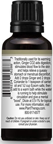 - EASY TO USE: Add 1 drops Ginger Root CO2 and 2 drops Coriander to 1 teaspoon of carrier oil and 1⁄2 cup Epsom salts; run into a warm bath to help stimulate circulation and give a mental “boost.” Use in a 0.5-1% dilution for topical use, the C02 ginger we offer needs further dilution than steam distilled ginger.