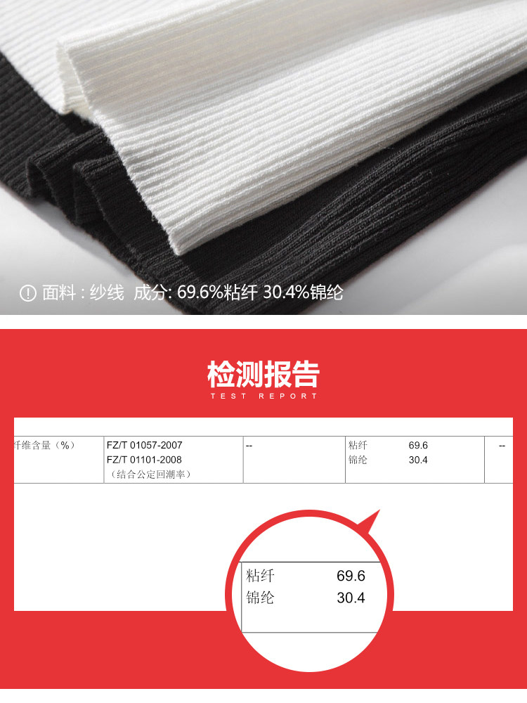 | 面 料:69.6%粘纤30.4%锦纶颜 色:白色,黑色 |