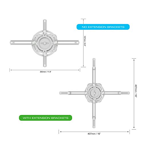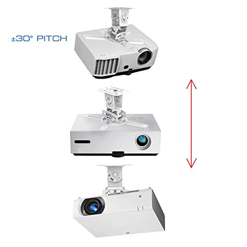 - Feature : Heavy gauge cold-rolled steel material; Durable construction / Universal design fits most projector brands; Weight capacity: 30 lbs.; Supported range of mounting holes on projector: 6.6" - 16" / Low profile flush mount; Holds projector at 6" from the ceiling / Multiple adjustments. Tilt: 0 to 60 degrees. Swivel: 360 degrees. Roll: +/-20 degrees. Pitch: +/-30 degrees. Shift: 1" / Snap-on / snap-off design for quick installation / release