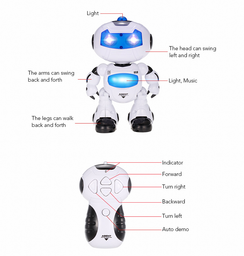 When it works, the robot toy can Lighten and play music.