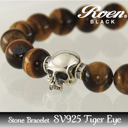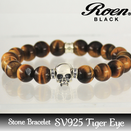 ●洗練された天然石とロンデルに埋め込んだキュービックに、精巧なフォルムに仕上げたスカルをあしらった、存在感のあるブレスレット。