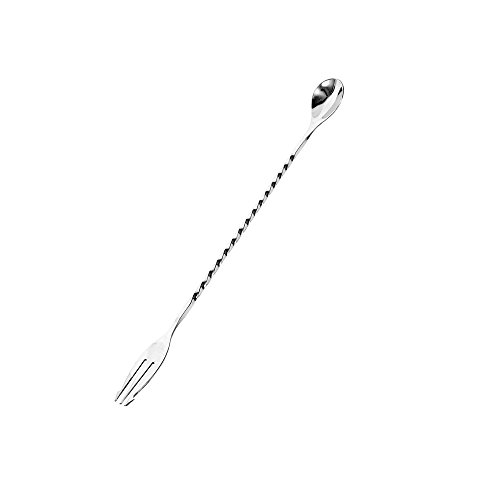 Kosma Stainless Steel Mixing Spoon With Fork |Cocktail Mixing Spoon | Twisted handle Bar Spoon - 40cm