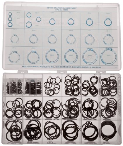 Carbon Steel External Retaining Ring Assortment (295 Pieces), Black Phosphate Finish, Metric, With Case