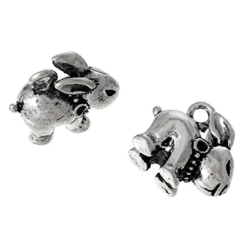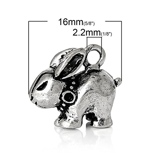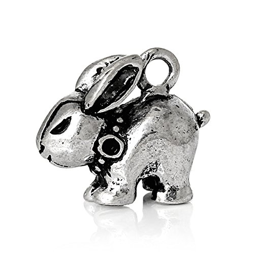 PEPPERLONELY Brand 20 Piece Antique Silver Charm Pendants Rabbit Animal 16mm x14mm( 5/8 x 4/8 Inch)