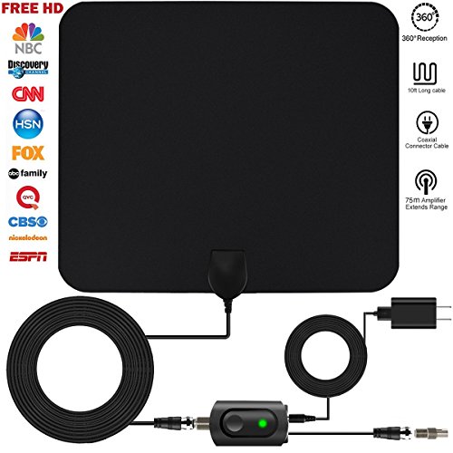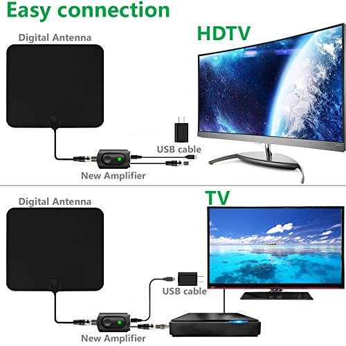 50 Mile Indoor Amplified TV Antenna No additional cost for satellite dish ormonthly fee for the cable!! Lavida Indoor TV Antenna helps you to get accessto FREE channels, and enjoy Crystal clear TV with up to 50 miles away from thesignal tower. Specifications: 1. Frequency range:170-240Mhz,470-862Mhz 2. VSWR:?2.0: 1 3. Impedance: 75Ω 4. LAN gain: 25dB 5. Connector: F Male / IEC male 6. Cable: 1.5C2V cable 7. Cable Length: 3M 8. Operation Temperature:-50~185℃ F (-45~85℃) 9. Receiving Range: VHF/UHF/Hi-V ?Easyto Install 1) Connect the antenna to 'ANT IN' on theback of any digital TV. 2) Put the antenna in an appropriate position 3) Scan channels: go to "Menu"---"Channel Search"and be ready to enjoy your TV programs. Note: The number of channels and the signalstrength are influenced by the distance you are located away from the signaltower. ?Areas with large obstructionssuch as mountains, forest might weaken signals. If you are located within 20 miles rangefrom the tower orthe signal is already strong enough, connection to theamplifier may not be needed. Tips --- if your Indoor TV antenna is notworking as expected, try the following: 1, Make sure the antenna is properlyconnected between turner and Set-top box (if there is one). Leave the TV andSet-top box ON. 2, Go to TV menu page, set the mode toIndoor Antenna or Air. Refer to the TV manual for detailed instructions. 3, Reposition the amplifier antenna to a differentplace until a best receiving location is reached. ?Normally it works better if sticking on to a windowor a wall. 0 |