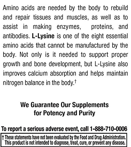 PROMOTES HEALTHY BONE DEVELOPMENT - L-Lysine helps your body to absorb and use calcium to grow and reinforce your bones. This critical amino acid can only be gained through diet or supplements.