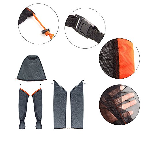 -. Feature : Made from featherweight see-through polyester No-See-Um mesh. / Ultra-fine mesh cannot be penetrated by mosquitoes. Equiped with jacket, mitts, pants, and socks, a perfect protection system for your outdoor activities. / Use translucent net yarn to avoid blocking eyesight. / Adjustable cord locks are set on the cuffs, waist, wrists and ankles, which can adjust the size and length. Medium fits 155-170cm, Large fits 170-185cm,X-Large fits 185-195cm. / Well packed in a solid and strong stuff sack, convenient to carry.